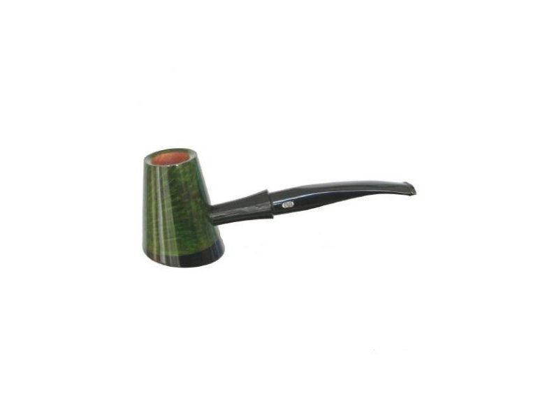 Chacom Vulcano 173 bruyer gyökérből készült zöld pipafej, 9mm-es filterrel és enyhén hajlított szárral. Közepes kazánmérettel. A Vulcano fantázianév nagyon találó, a formája mint egy igazi tűzhányó.