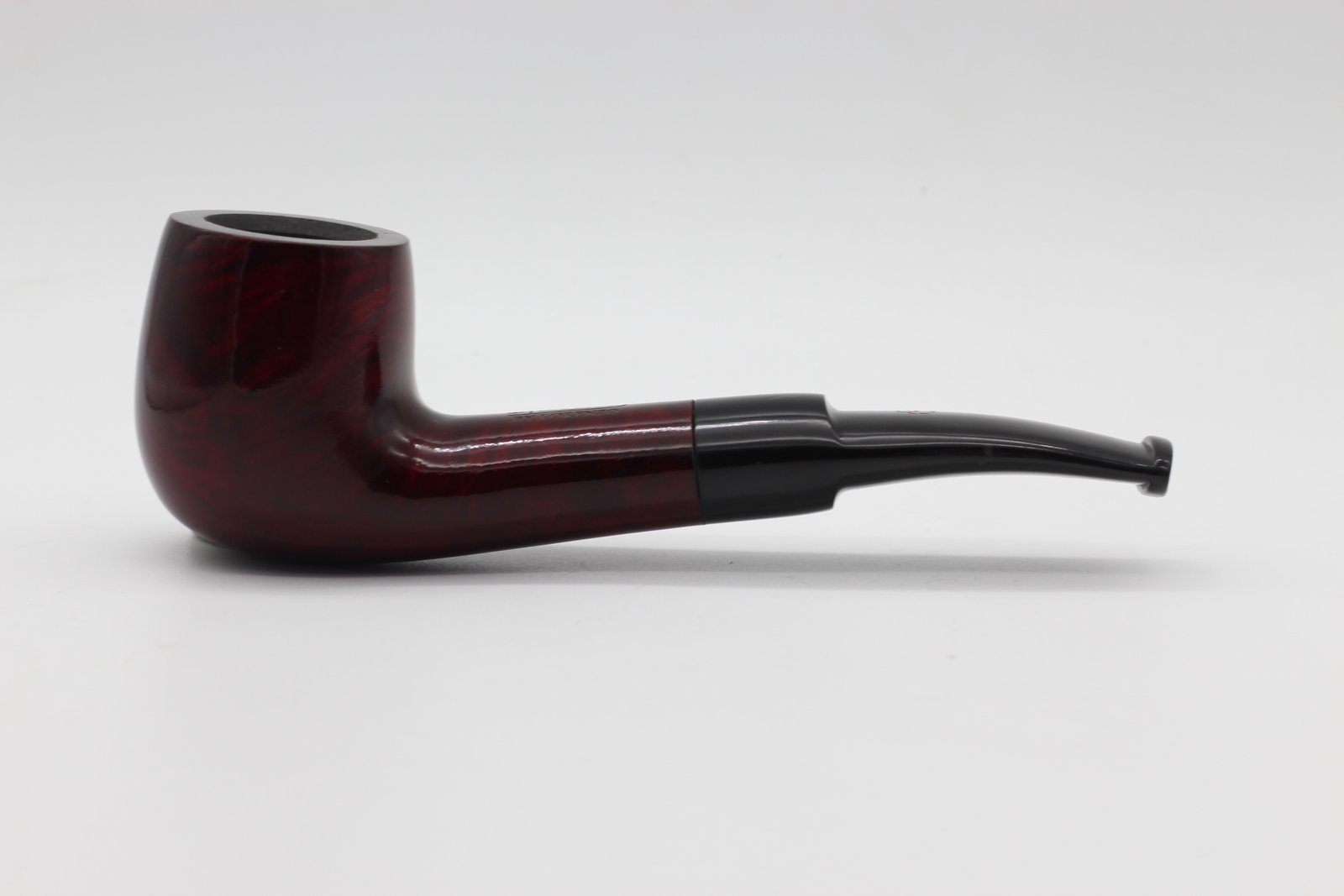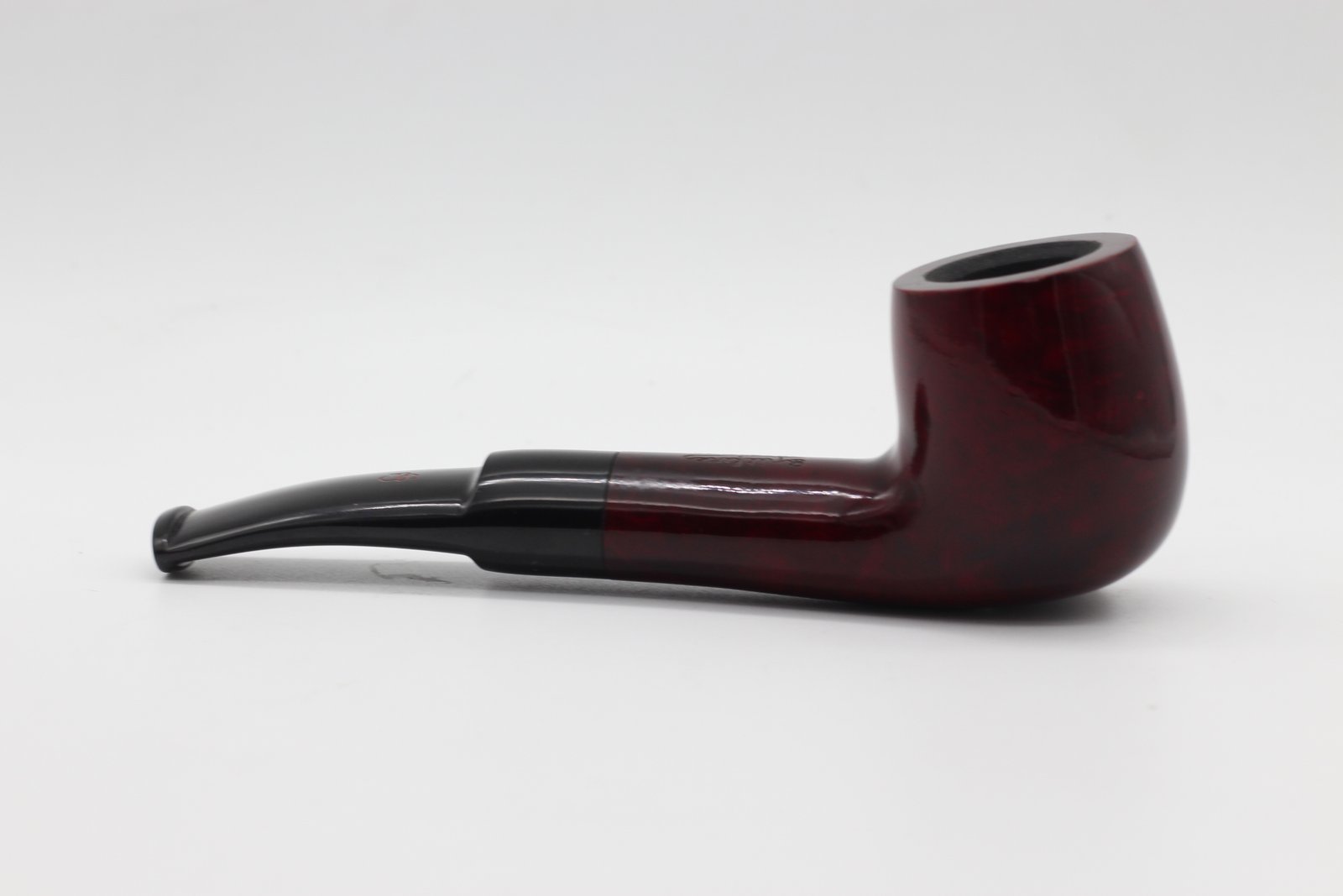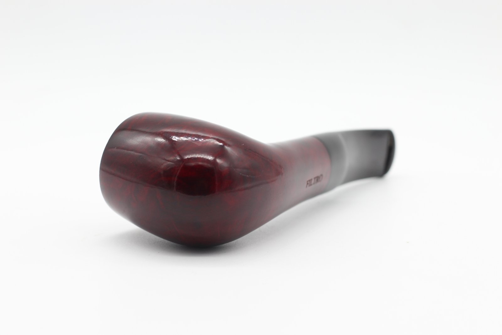 Ez a Lorenzo Filtro Red Polish pipa bruyere gyökérből (Briar, Hanga-gyökér - helytelenül fordítják úgy is: rózsafa, vadrózsa) készült, polírozott, bordó pipafej, közepes kazánmérettel, enyhén hajlított, lapos szárral és fekete akril, nyerges szopókával és 9mm filterrel.