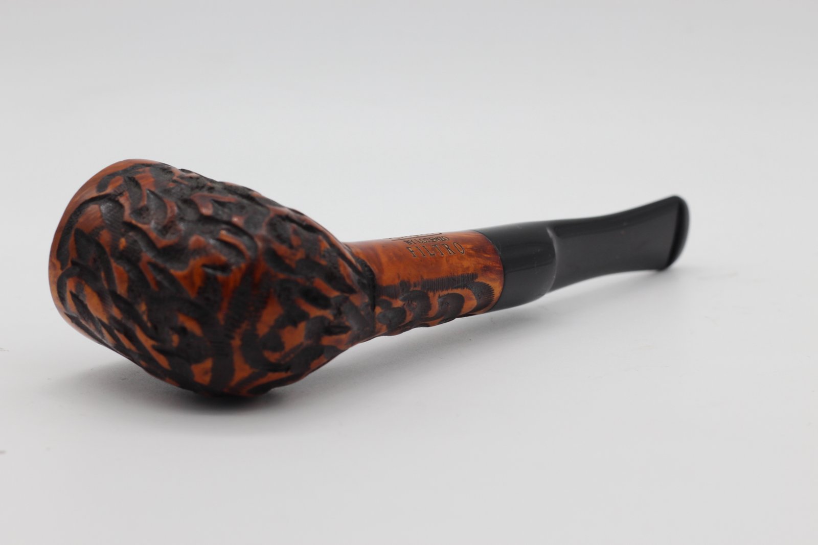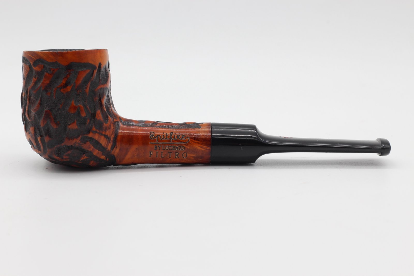 A Lorenzo pipa Filtro Rustic pipa bruyere gyökérből készült (Briar, Hanga-gyökér - helytelenül fordítják úgy is: rózsafa, vadrózsa) barna színű, kézzel rusztikolt pipafejjel, egyenes szárral, fekete 6 mm-es filteres nyerges akril szopókával. Közepes kazánméretű.