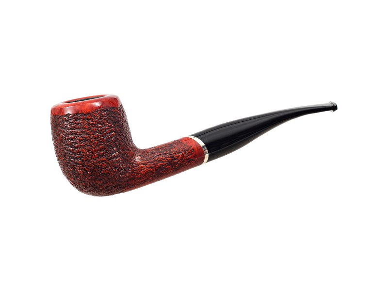 Bruyere (Briar, Hanga-gyökér, amit helytelenül rózsafának is fordítanak) gyökérből készült rusztikus pipafej, 9mm-es filteres, acryl szopókával, egyenes szárral, a szárat ovális ezüstgyűrű díszíti. Közepes kazánméret.