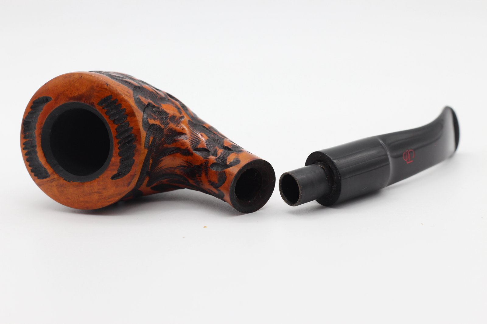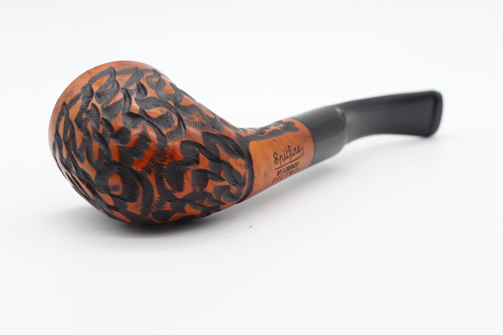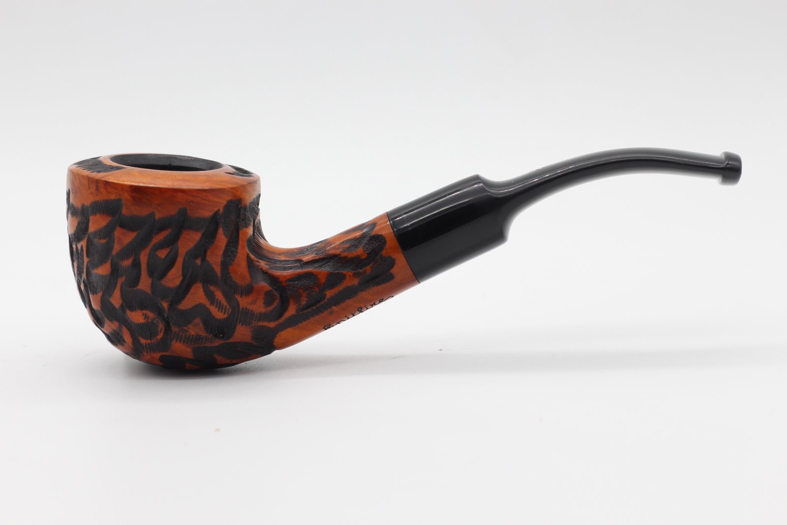 A Lorenzo pipa Filtro Rustic pipa bruyere gyökérből készült (Briar, Hanga-gyökér - helytelenül fordítják úgy is: rózsafa, vadrózsa) barna színű, kézzel rusztikolt pipafejjel, hajlított szárral, fekete 9 mm-es filteres, fekete nyerges akril szopókával. Közepes kazánméretű.
