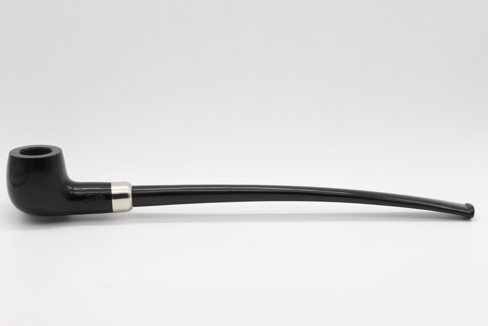 Lorenzo TV-pipa Laddie 125 Black Polish bruyere gyökérből készült fekete színű, polírozott pipafej, 9 mm filteres, egyenes, hosszú szopókával.